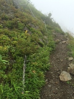 丹沢山の鎖場です。 小雨が降る中、滑らないように気をつけて一歩一歩登りました。 ちょっと怖かったです。