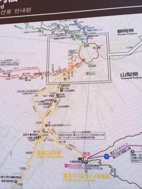 富士山登山道の地図です。 この日は吉田口から登りました。