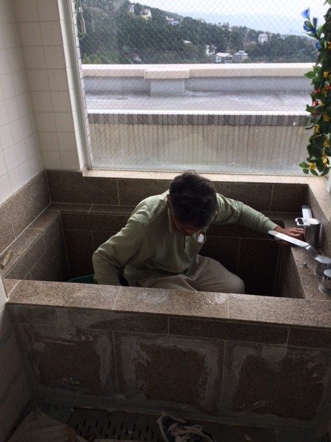 錆御影石、浴槽 2016年10月21日 遠藤慎司 未分類 0 Tweet Pocket 函南町の浴室リフォーム、錆御影石の浴槽を造りました。 久しぶりの在来工法です。システムバスも悪くはないですが、重厚感という面では在来にはかないません。 天然石の浴槽は流石の趣き。ワビサビの世界です。
