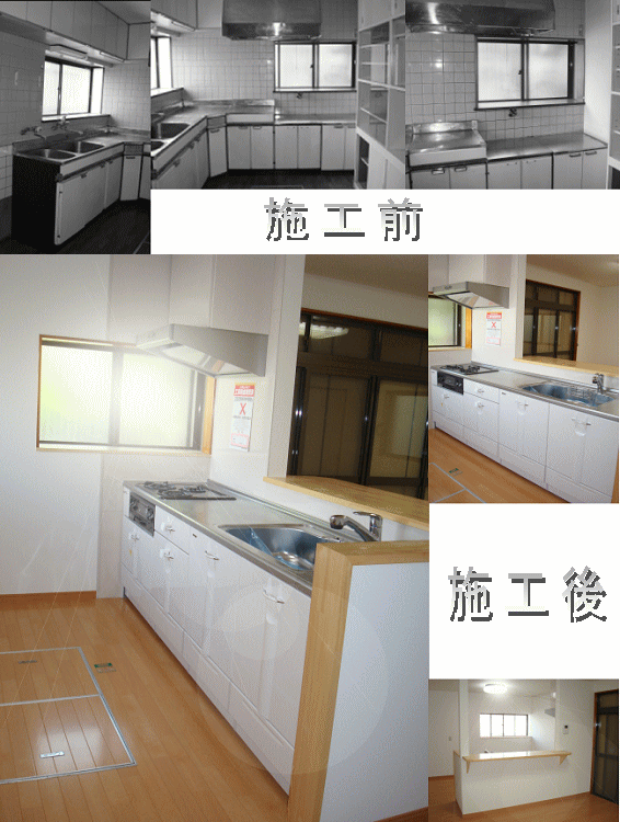 キッチンは施主さんこだわりのハイグレードキッチン、タカラのフレアです。元々、壁側にあったキッチンを対面式キッチンに改修、白基調の清潔感溢れるダイニングキッチンに仕上がりました。